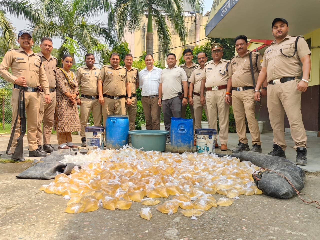 गठित प्रवर्तन टीम द्वारा दिनांक 13 सितंबर 2025 को ग्राम रायपुर के जंगल क्षेत्र, जो कि अवैध मद्य निष्कर्षण की संदिग्ध गतिविधियों हेतु चिन्हित था, में सघन तलाशी अभियान चलाया गया। अभियान के दौरान टीम को छह अवैध शराब भट्ठियाँ मौके पर चलती अवस्था में प्राप्त हुईं, जिन्हें तत्काल ध्वस्त किया गया। मौके से 350 पाउचों में पैक की गई कच्ची शराब बिक्री हेतु तैयार अवस्था में बरामद की गई। इसके अतिरिक्त दो ट्यूबों में 45-45 लीटर, कुल 90 लीटर अवैध शराब तथा एक 30 लीटर क्षमता वाला ड्रम शराब से भरा हुआ बरामद किया गया। अभियान के दौरान लगभग 1500 किलोग्राम लहान (किण्वित मिश्रण) को मौके पर ही नष्ट किया गया। शराब निष्कर्षण में प्रयुक्त उपकरणों एवं निर्माण सामग्री को भी विधिसम्मत रूप से जप्त किया गया।